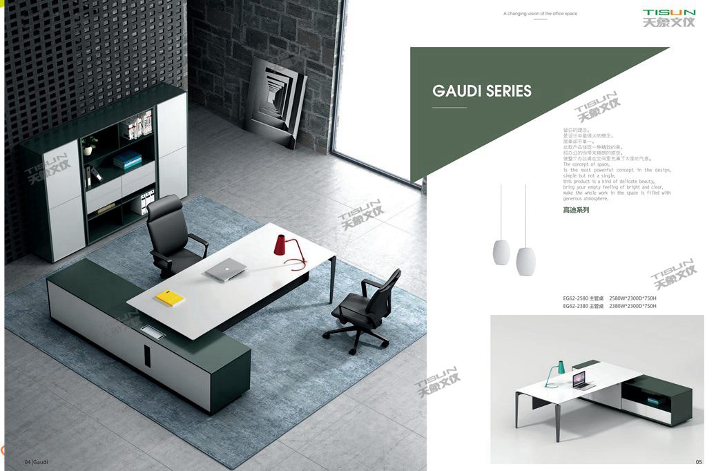 简洁大气的外观造型为第一出发点,很多时候它其实是一种对办公需求的直接表达,更是主人一种时尚、自由、激情的工作态度。这不仅仅是办公家具的作用,更是这一类定制办公家具所具有的无与伦比的意义。